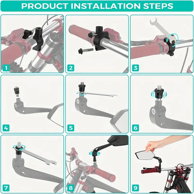 2pcs high-definition glass adjustable bicycle rearview mirror, 360°