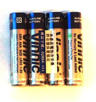 BATTERY - 'AAA', Alkaline, 1.5V, AM4, LR03, 4 Per Pack