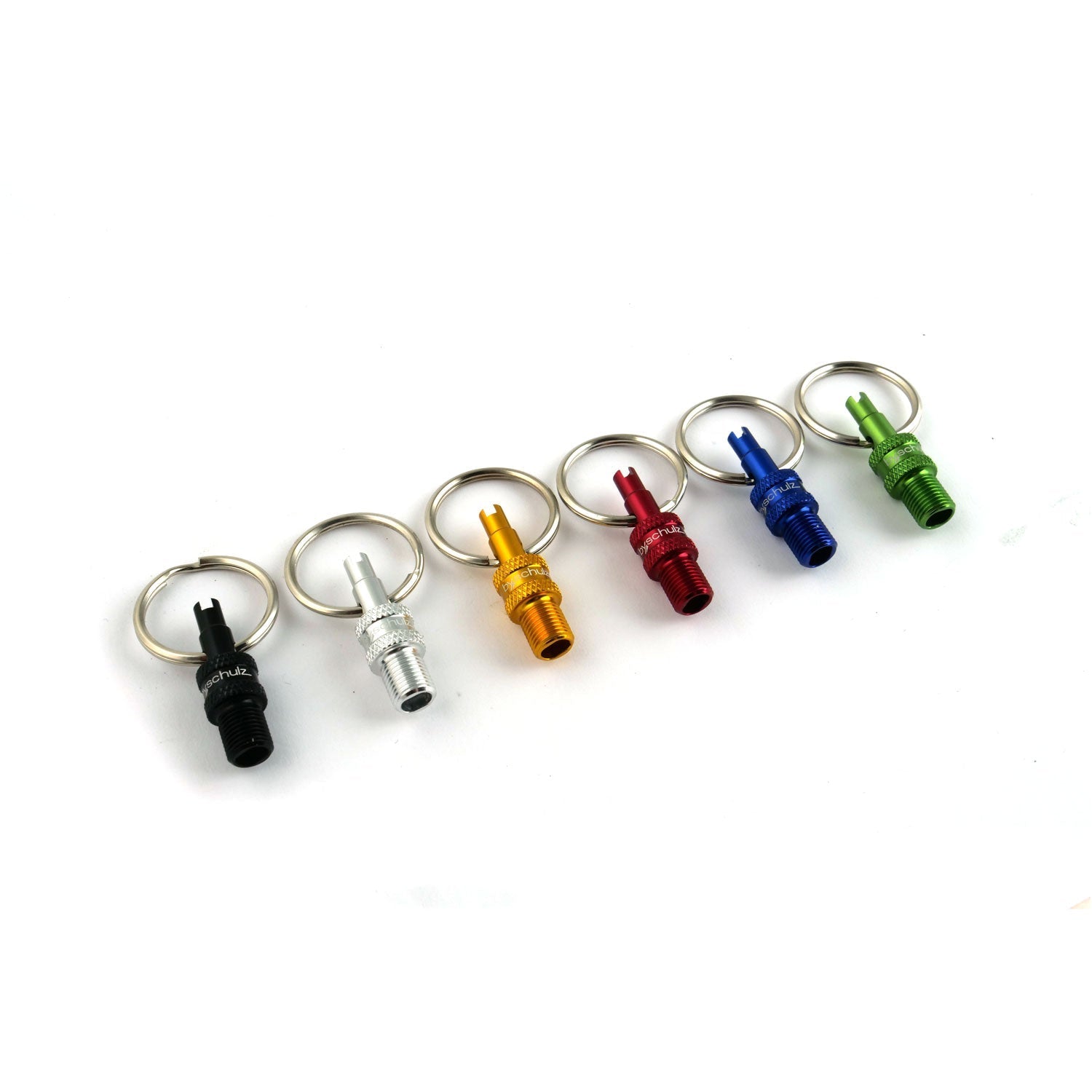 VALVE MULTI TOOL - COUNTER DISPLAY, 60 units 6 assoted colours - (F/V to A/V Converter + A/V & F/V Remover on Keyring) - By,schulz