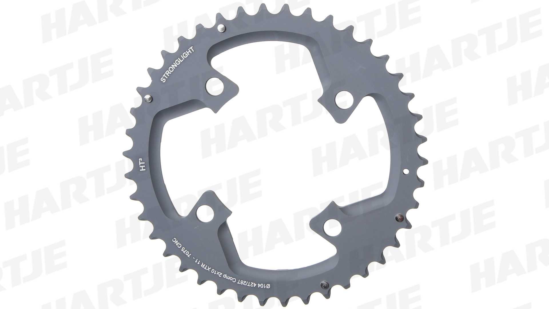 CHAINRING - MTB "STRONGLIGHT", 42T, 7075 CNC Black HT3 XTR - 104mm BCD, 4 Hole for 10 Spd (Compatible with Chainring Bolt SL350135)