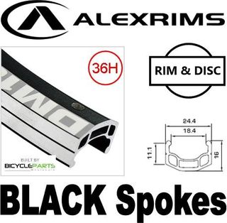 WHEEL - 26" Alex DM18 36H Black Rim, FRONT 15mm T/A (100mm OLD) 6 Bolt Disc Sealed Novatec Black Hub, BLACK Spokes