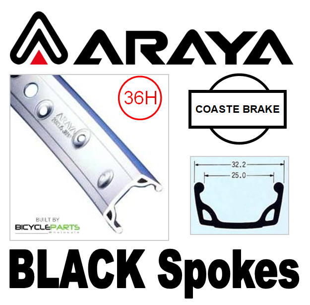 WHEEL - 26" Araya 7X 36H Silver Rim, 1 SPEED COASTER 3/8 Nutted (110mm OLD) Loose Ball Hi-Stop Silver Hub, Mach 1 BLACK Spokes