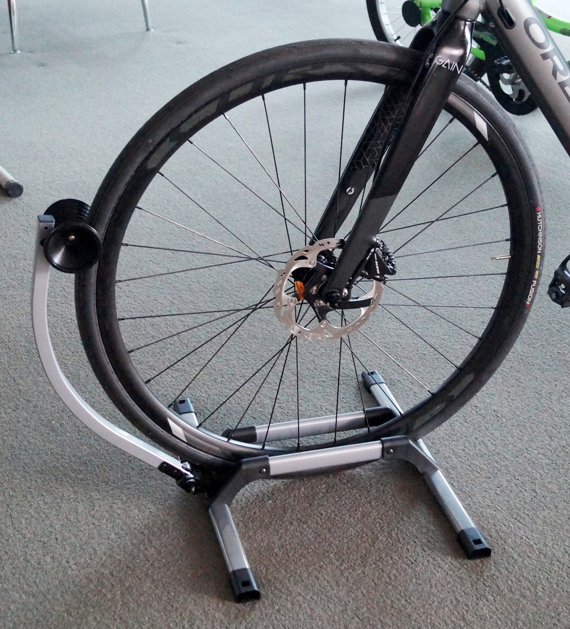 Sold outDISPLAYor PARKING STAND for 20" to 29ER Bikes, Suits Road, BMX or MTB Tyres (Max Tyre Width 6.5cm) Great for Disc Brakes, Spring arm holds Front or Rear Wheel, Holds 1 Bike, Silver/Black
