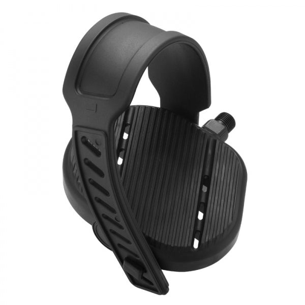 PEDALS 1/2" Exercise Bike, bottom weighted, 115.2 x 130.9 x 51 mm, Plastic platform, Steel axle, ball bearing, adjustable PU strap, BLACK