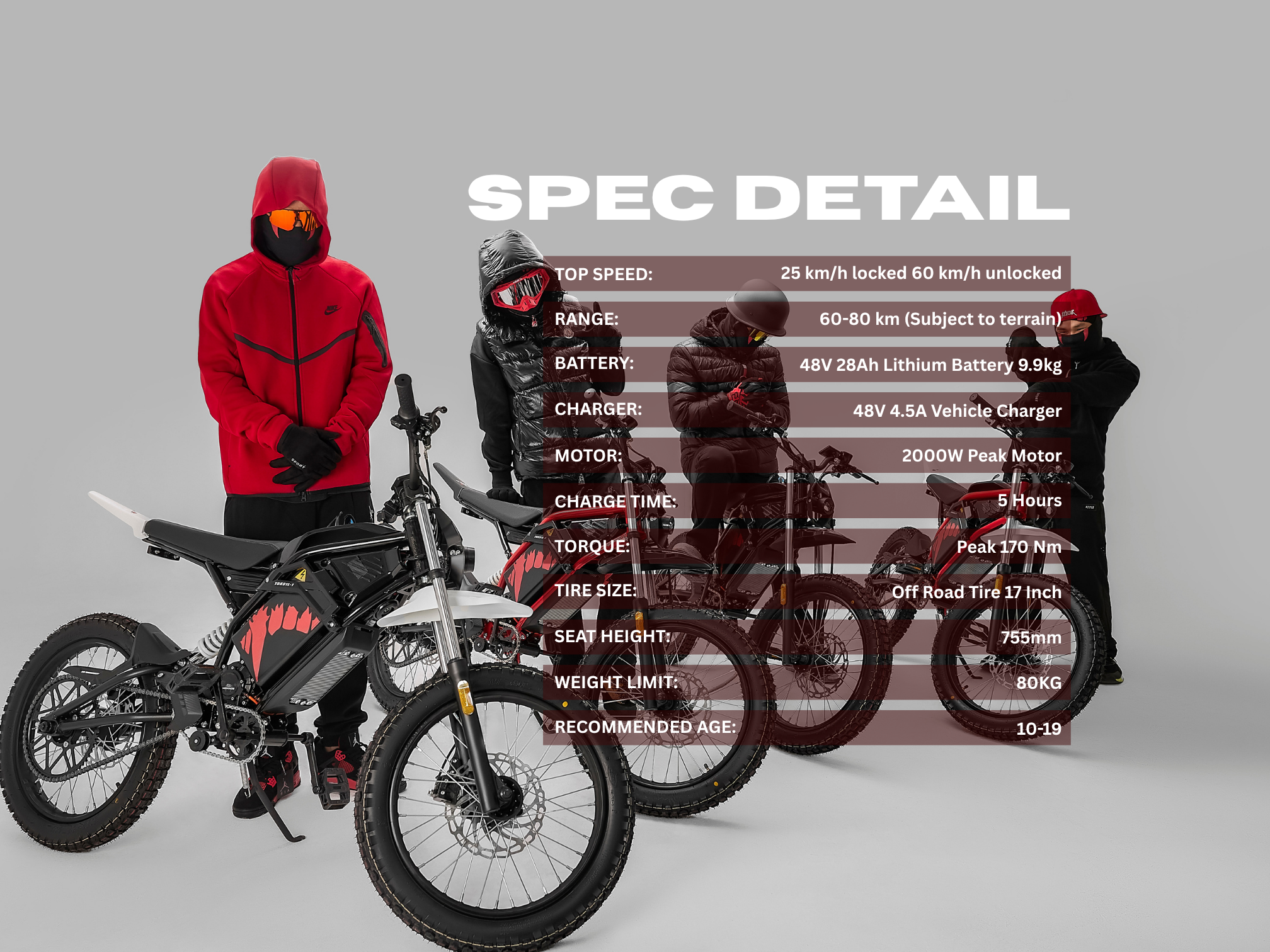 Precision front and rear suspension swallow ruts, curbs, and chatter so your line stays locked. Tuned for comfort without the mush, making MENACE suitable for city commute and dirt track wildness.