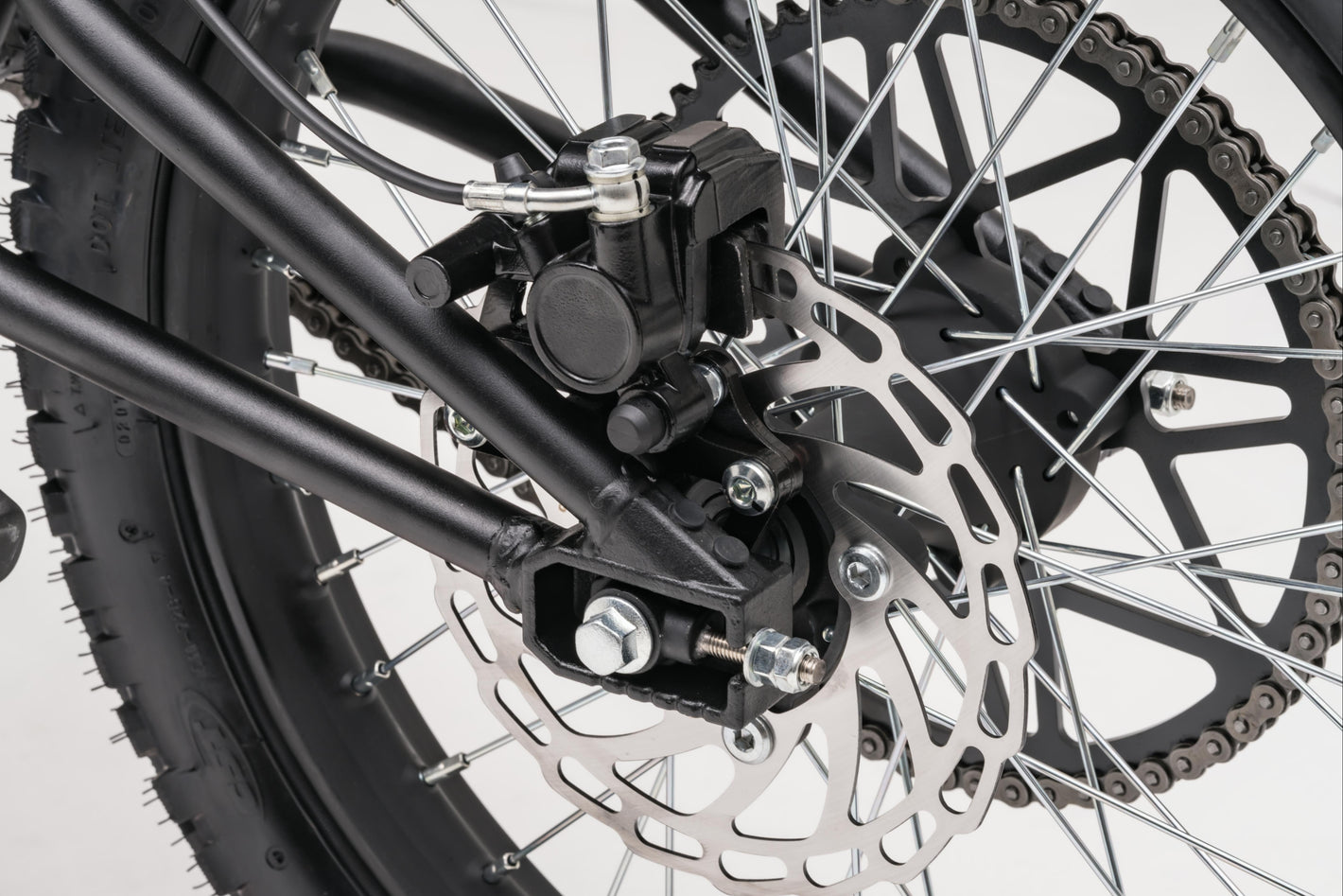 Motorcycle-grade discs bite hard and release smooth for fingertip control at any speed. When the unexpected hits, you stop exactly where you intend.
