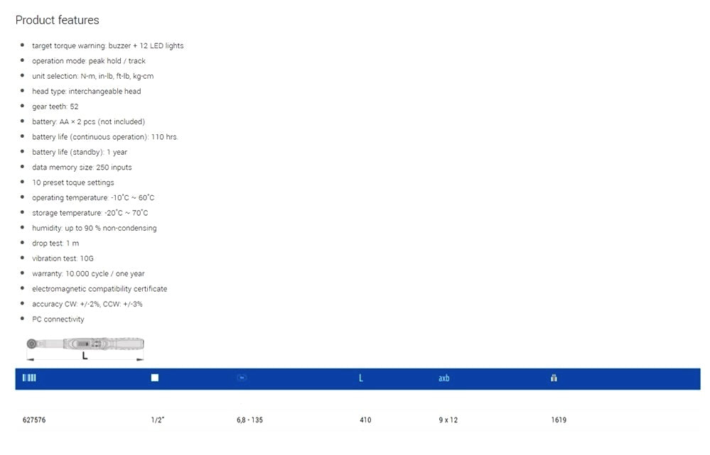 UNIOR Digital/Electronic torque wrench 1/2", 266 - 627576, Interchangeable head, Quality guaranteed